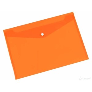 Koperta PP na zatrzask, mieszcząca format A4. Wymiary koperty: 330x235 mm, grubość: 0,14 mm. Pomarańczowa. Opakowanie: folia 12 sztuk.