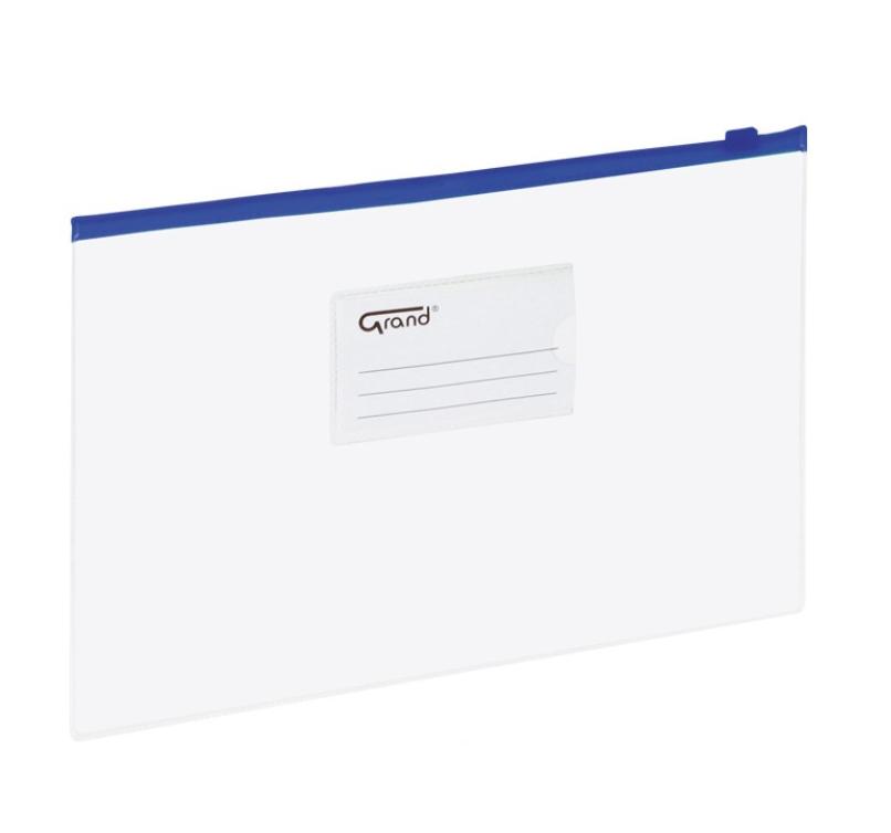 Materiał polipropylen. Zewnętrzna kieszeń na wizytówkę. Zamek strunowy w kolorze niebieskim. Format A5.