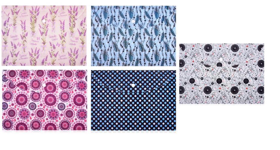Ozdobna koperta na dokumenty formatu A4, zapinana na zatrzask. Mix wzorów, wzory wysyłane losowo