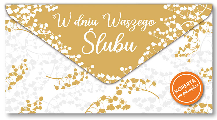 Koperta podarunkowa na Ślub KOP-026 Koperta podarunkowa jest eleganckim sposobem na podarowanie bliskiej osobie banknotu lub karty podarunkowej. Koperta jest kolorowa i uszlachetniona metalizowaną folią hot-stamp, jest solidnie wykonana i wyposażona w rzep, co umożliwia jej wielokrotne otwieranie i zamykanie. Koperta zawiera życzenia w środku. Specyfikacja: wymiary: 20 x 10,5 cm (po złożeniu) wnętrze: życzenia w środku okazja: Ślub Koperty są pakowane po 3 szt.