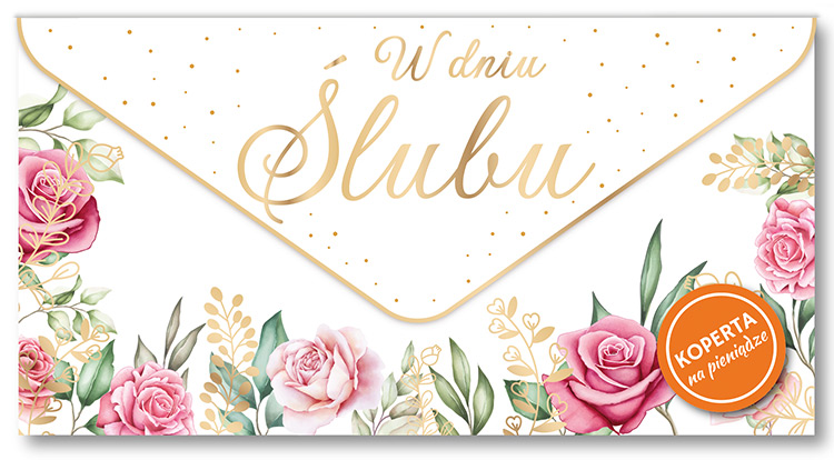 Koperta podarunkowa na Ślub KOP-027 Koperta podarunkowa jest eleganckim sposobem na podarowanie bliskiej osobie banknotu lub karty podarunkowej. Koperta jest kolorowa i uszlachetniona metalizowaną folią hot-stamp, jest solidnie wykonana i wyposażona w rzep, co umożliwia jej wielokrotne otwieranie i zamykanie. Koperta zawiera życzenia w środku. Specyfikacja: wymiary: 20 x 10,5 cm (po złożeniu) wnętrze: życzenia w środku okazja: Ślub