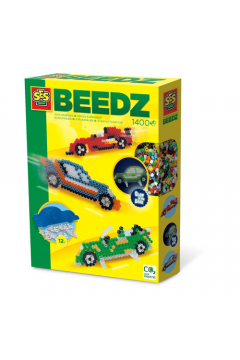 SES to firma produkująca zestawy kreatywne, m.in. wielobarwne koraliki i podstawki z wypustkami, dzięki którym dziecko może ułożyć proste oraz skomplikowane wzory. Wzór podkładki: auto i 1400 szt. koralików.