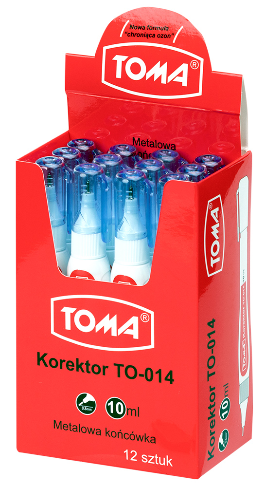 Metalowa końcówka z kulką 1 mm, szybkoschnący płyn korekcyjny, bez toksycznych rozpuszczalników, zawartość ok. 10 ml.
