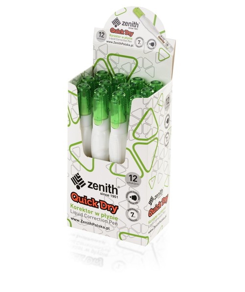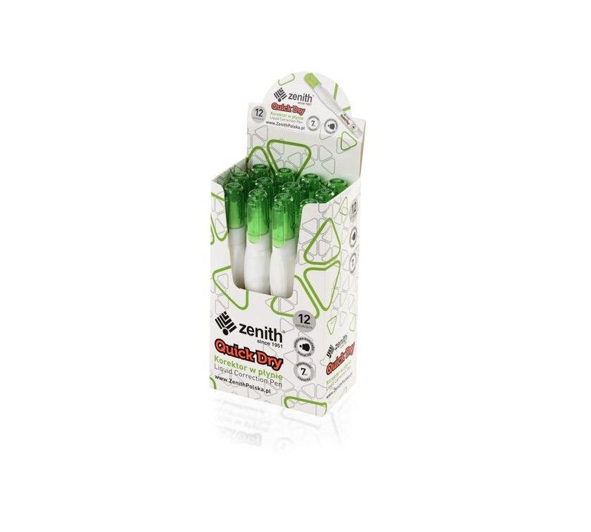 Korektor w płynie 7m Quick Dry ZENITH Korektor z metalową końcówką. Szybkoschnący i doskonale kryjący. Pojemność 7 ml