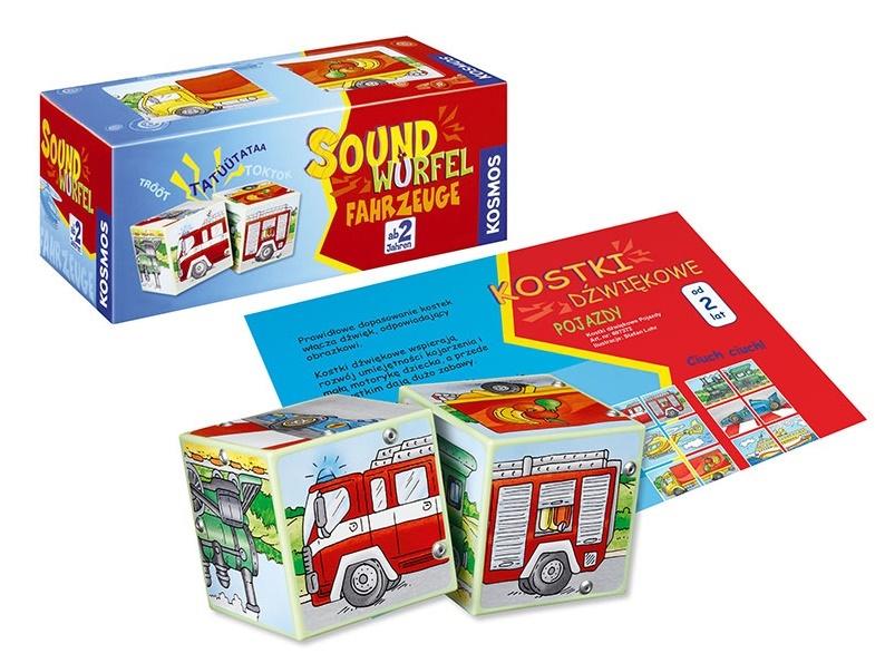 Kostki dźwiękowe, które wprowadzą nas w świat pojazdów i dźwięków, które wydają. Prawidłowe dopasowanie kostek włącza dźwięk, odpowiadający obrazkowi. Kostki dźwiękowe wspierają rozwój umiejętności kojarzenia i małą motorykę dziecka, a przede wszystkim dają dużo zabawy. Automatyczne sygnalizacja prawidłowego dopasowania umożliwia samodzielną zabawę. Pudełko w języku niemieckim, w środku znajduje się kolorowa instrukcja w języku polskim oraz niemieckim.