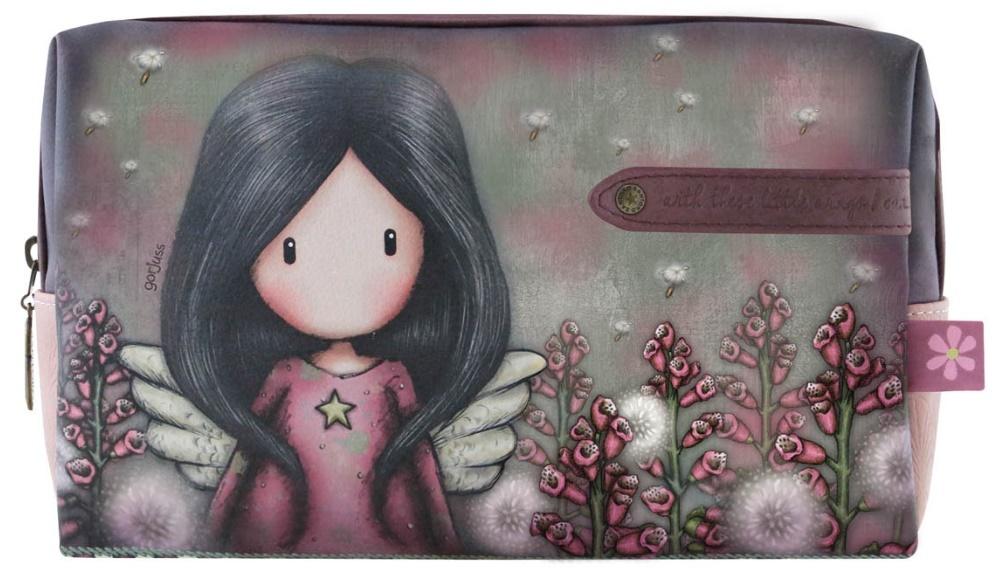 Duża Kosmetyczka - Gorjuss - Little Wings. Fantastycznie zaprojektowana kosmetyczka ozdobiona stylowym wizerunkiem Dziewczynki Gorjuss ze skrzydełkami. Nadaje się do przechowywania niemal wszystkiego : od rzeczy niezbędnych w podróży, poprzez zestawy do makijażu. Stylowy wzór utrzymany w pięknej palecie delikatnego różu i seledynu sprawia, że może być doskonałym prezentem. Zapinana na suwak. Wnętrze wyściełane podszewką z logiem Santoro.
