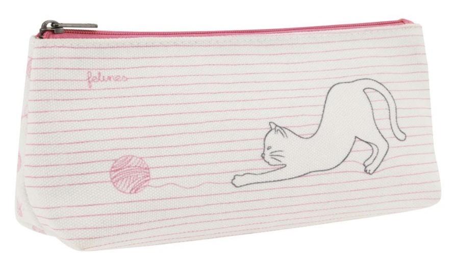 Szczegółowy z prostymi poziomymi liniami w delikatnej palecie ciemnoróżowych kolorów, obudowa zawiera grafikę, którą mam z przodu Felines For You, z nowoczesnym nadrukiem powtarzającej się przędzy z tyłu.