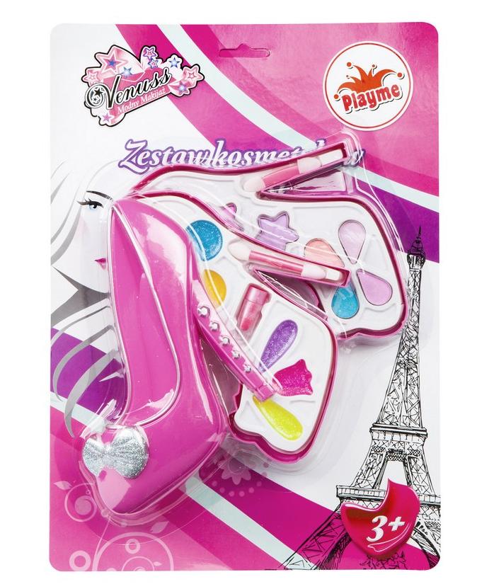 Zestaw kosmetyków do makijażu dla lalki w kształcie bucika.