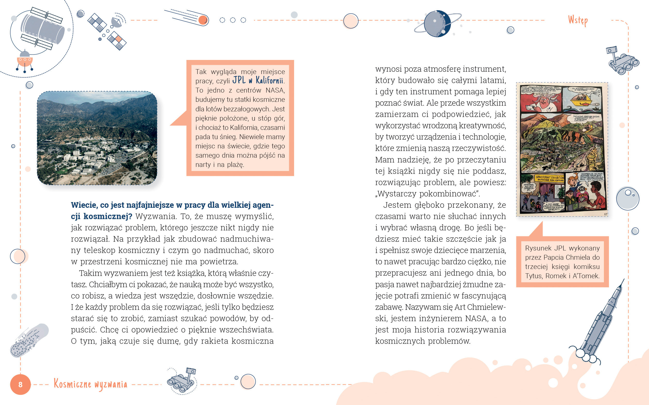 W książce opowiada o najważniejszych kosmicznych projektach, o których nigdzie indziej nie przeczytasz! Zobacz, jak rozwiązuje się problemy w stylu NASA. Uwierz w siebie - Ty też potrafisz! Wystarczy pokombinować, bo nauka jest megaciekawa.