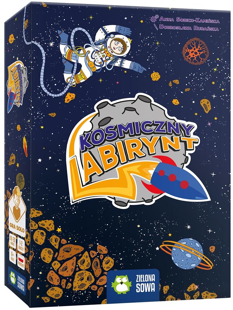 „Kosmiczny labirynt” to ciekawa gra jednoosobowa (możliwy również wariant dwuosobowy), w której liczy się spostrzegawczość, umiejętność dobrego planowania i zdolność logicznego myślenia. Gracz wciela się w postać astronauty, który musi dotrzeć do odległych planet. W tym celu przekręca lub przestawia kafelki tak, aby utworzyły drogę, która do nich prowadzi. Jednocześnie należy uważać, aby nie stworzyć połączenia między bohaterem a asteroidami, ponieważ wtedy gracz przegrywa.