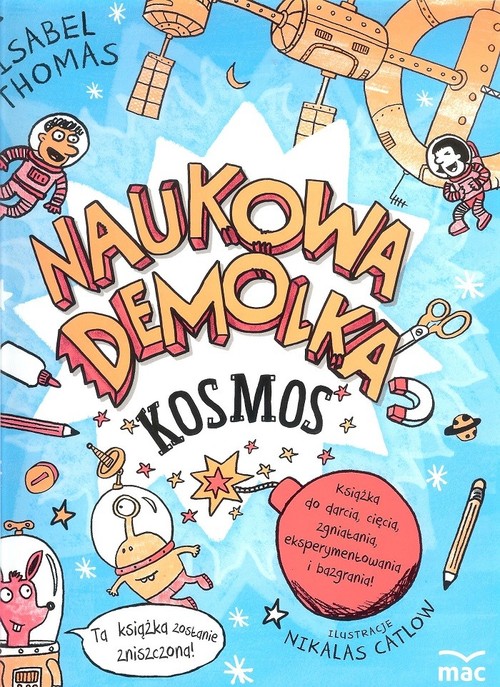 Kosmos, pierwszy tom serii „Naukowa demolka”, autorstwa Isabel Thomas to książka pełna zabawnych i ekscytujących projektów. Jej kartki można wykorzystać na różne sposoby. Publikację można składać, ciąć, mazać. Słowem, można z nią dowolnie eksperymentować, aby dowiedzieć się wszystkiego o kosmosie!