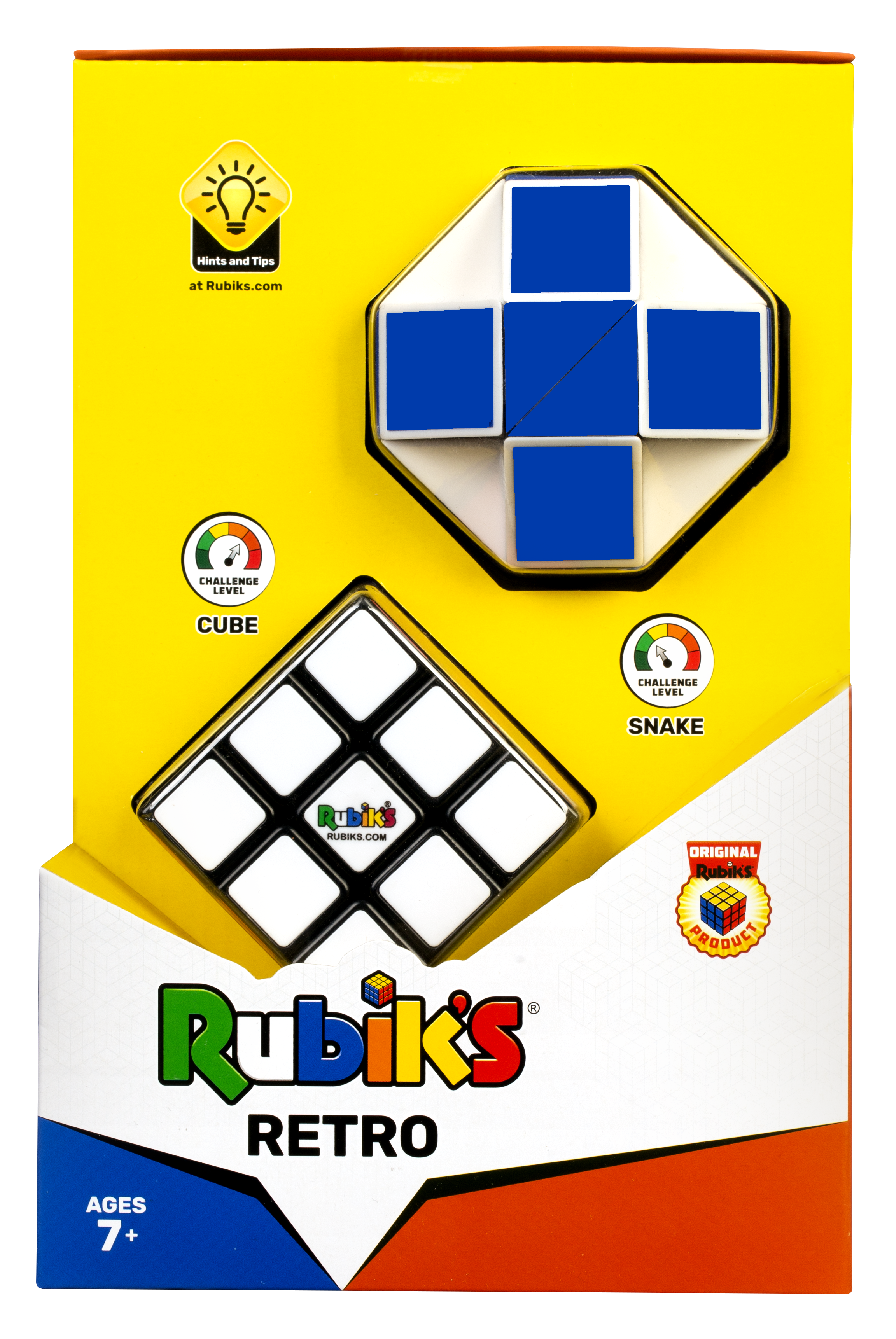 Popularna zabawka logiczna w wersji Retro. Zestaw zawiera kostkę 3x3 oraz Snake.
