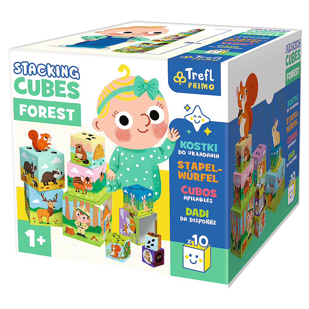 Kostki do układania Las, zestaw 10 kolorowych kostek różnej wielkości. Można z nich zbudować wieże lub układać je na wiele różnych sposobów.