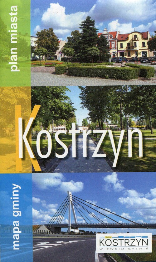 Na odwrocie karton Gmina Kostrzyn w skali 1:45 000, opis Kostrzyna jego historii i ważniejszych zabytków.