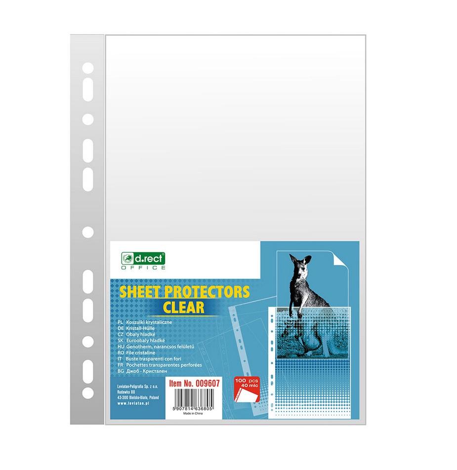 - krystaliczna folia 40 mic - otwierane od góry - na dokumenty w formacie A4 - antystatyczne - wzmocniony pasek z uniwersalną perforacją - wykonane z polipropylenu - opakowanie foliowe