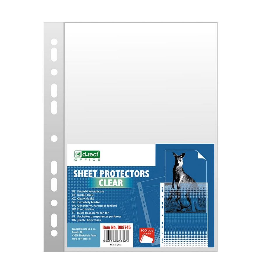 - krystaliczna folia 45 mic - otwierane od góry - na dokumenty w formacie A4 - antystatyczne - wzmocniony pasek z uniwersalną perforacją - wykonane z polipropylenu - opakowanie foliowe