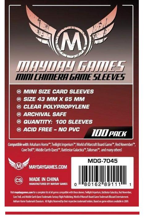 Przezroczyste koszulki ochronne na karty do gier, wykonane z czystego polipropylenu, bez zawartości PVC, grubość 40 mikronów. Lista gier do których pasują koszulki:The Adventurers, Arkham Horror Board Game, Battlestar Galactica, Chaos In The Old World, Defenders Of The Realm, Hoity Toity, Middle Earth Quest, Talisman 4th Edition, Battlestar Galactica, Battlestar Galactica: Exodus, Horror w Arkham, Horror w Arkham: Klątwa Czarnego Faraona, Horror w Arkham: Koszmar z Dunwich, Horror w Arkham: Król w Żółci, Posiadłość Szaleństwa, Sid Meier`s Civilization PL (CYWILIZACJA) , Sid Meier`s Civilization: Sława i Bogactwo, Talisman: Magia i Miecz, Talisman: Magia i Miecz - Góry, Talisman: Magia i Miecz - Królowa lodu, Talisman: Magia i Miecz - Pani Jeziora,Talisman: Magia i Miecz - Podziemia, Talisman: Magia i Miecz - Smoki, Talisman: Magia i Miecz - Wilkołak, Talisman: Magia i Miecz - Żniwiarz,Talisman: The Blood Moon