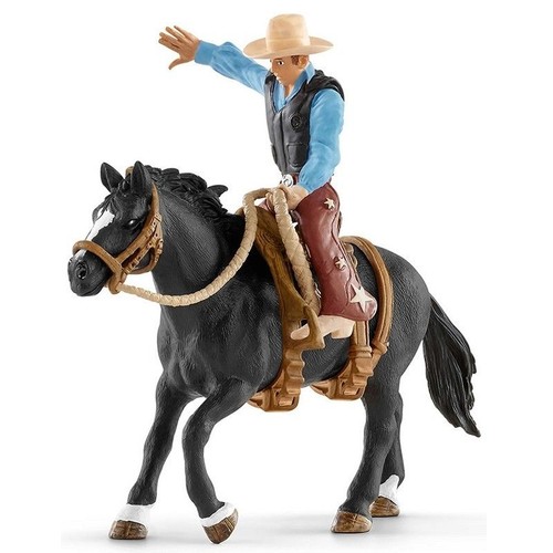 Figurka kowboja siodłającego dzikiego konia Seria Farm Life zawiera okazy zwierząt hodowanych w gospodarstwach na całym świecie. Teraz dzięki figurkom Schleicha i licznym akcesoriom dodatkowym, jak chociażby: stajnie, zagrody czy wóz z zaprzęgiem, mali miłośnicy przyrody mogą stworzyć swoją własną farmę z prawdziwego zdarzenia, w zaciszu własnego pokoju.