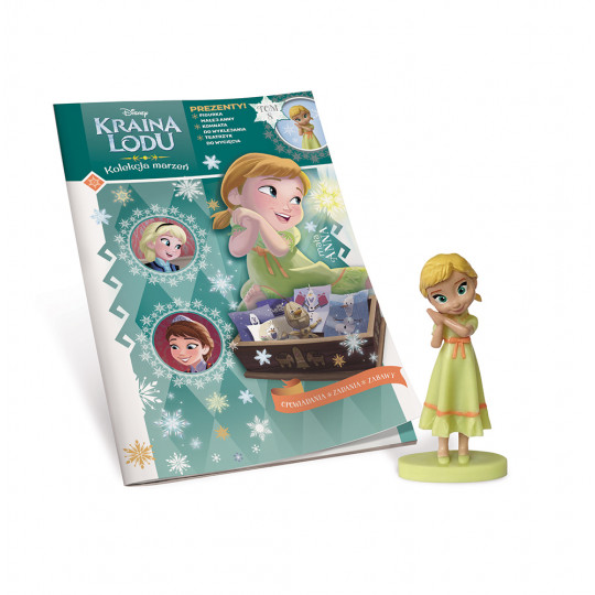 W każdym tomie Kolekcji Marzeń znajdziesz prześliczną ręcznie malowaną figurkę, kolejną część filmowej historii , a także nieznane przygody Anny, Elsy i ich przyjaciół. Do tego czeka Cię mnóstwo zabawy – wycinanki, naklejki, zadania, ciekawostki oraz scenki do wyklejania, dzięki którym zwiedzisz wspaniałe komnaty zamku Arendelle! Kolekcja składa się z 20 tomów, nowy tom w sprzedaży co 2 tygodnie