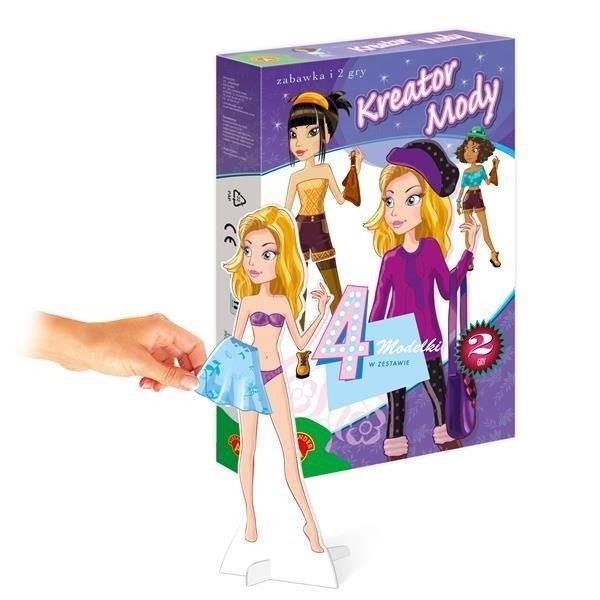 "Kreator mody" to zabawa polegająca na ubieraniu 4 wspaniałych modelek z dobranych i skomponowanych przez siebie elementów garderoby, znajdujących się w pudełku. Elementy ubrań są bardzo zróżnicowane pod względem kształtu i kolorystyki, co pozwoli na tworzenie zaskakujących i oryginalnych kreacji. Do wizerunków modelek można łatwo przyczepiać różne części garderoby (bez użycia kleju). Zabawa w kreatora mody rozbudzi Twoją wyobraźnię i zachęci do twórczego działania sprawiając jednocześnie wiele radości i satysfakcji.