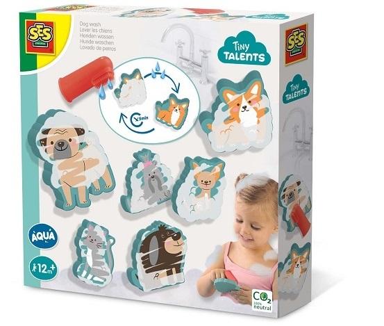 Te psy (i jeden kot) były trochę niegrzeczne i tarzały się w błocie. Trzeba było je wyprać i zniknęły całkowicie pod grubą warstwą piany! Czy zamierzasz je wyczarować ponownie? Stają się ponownie widoczne pod wpływem wody, gdy użyjesz dołączonej szczoteczki palcowej! Przyjemny w wannie lub pod prysznicem!