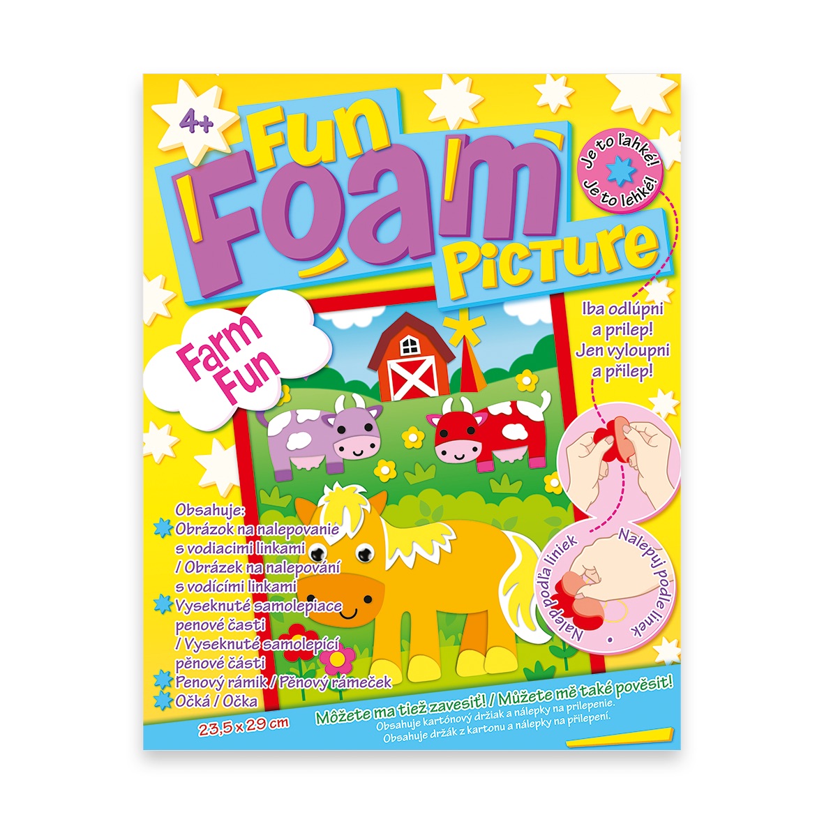 Zestaw kreatywny zawiera: Zdjęcie ze wzorem, wycinane samoprzylepne części piankowe, ramka z pianki, uchwyt na karton, naklejki i instrukcje użytkowania. Wielkość opakowania: 23,5x29 cm