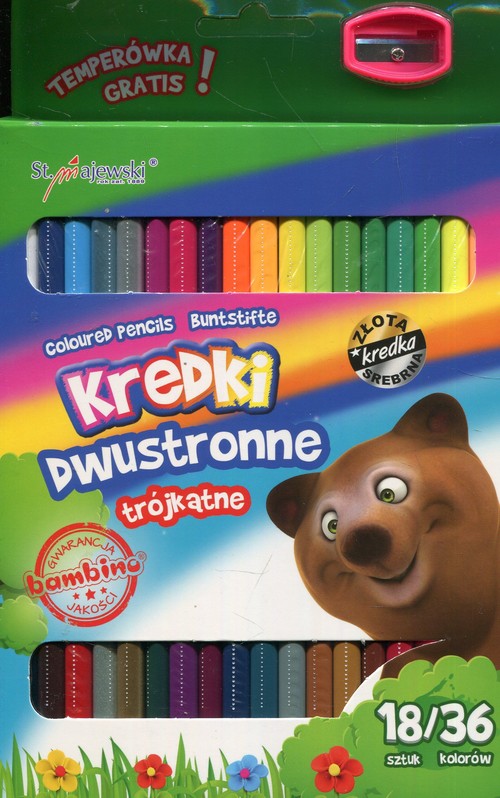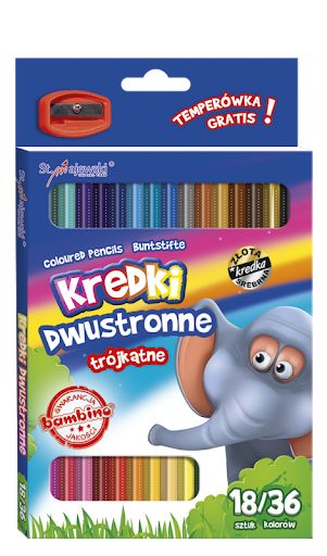 Kredki trójkątne dwustronne 18/36 kolorów + temperówka.