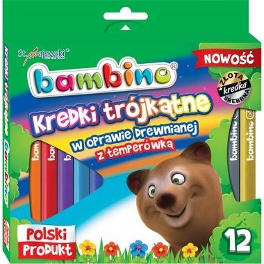 Kredki szkolne Bambino 12 kolorów o ergonomicznym trójkątnym kształcie.