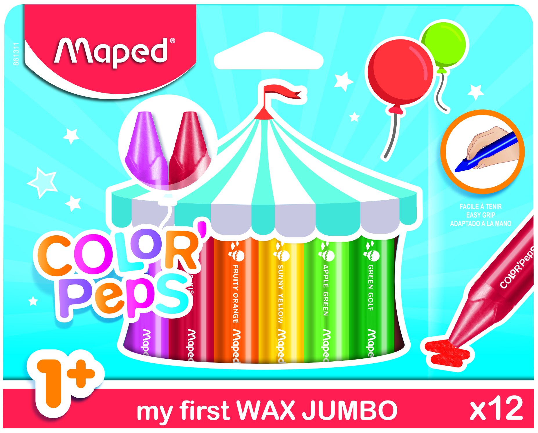 Kredki świecowe JUMBO w papierowej otulinie zabezpieczającej przed pobrudzeniem rąk, gruby trójkątny przekrój zapewnia intuicyjnie poprawny chwyt, intensywne kolory, wysokiej jakości wosk wpływa na  miękkie rysowanie, nietoksyczne - wyprodukowane zgodnie z wszystkimi regulacjami dotyczącymi produktów przeznaczonych dla dzieci. 12 kolorów. JS 1 etui.