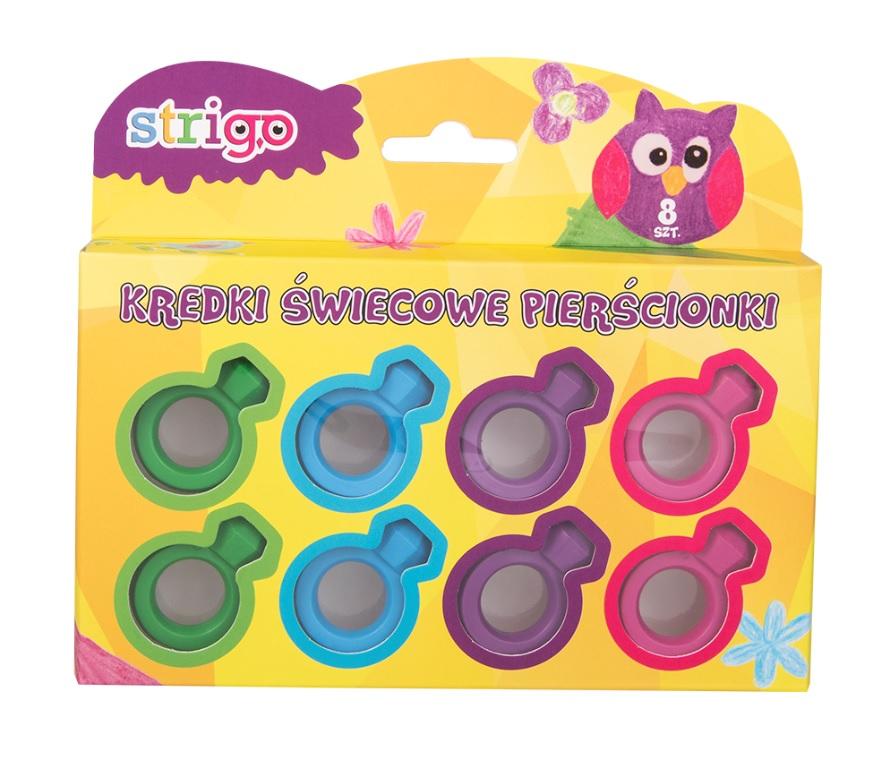 Do kolekcji kredek Strigo, piszących całą powierzchnią, dołączyły Pierścionki z ,,brylantem"". Kredki można nałożyć na palec lub chwycić palcami - i rysować! Każdy rodzaj kredek ćwiczy inne ruchy dłoni najmłodszych, wszystkie natomiast, ze względu na swoje ciekawe, niezwykłe kształty spotkają się z zainteresowaniem najmłodszych testerów. Kredki dostępne są w 4 głębokich kolorach.