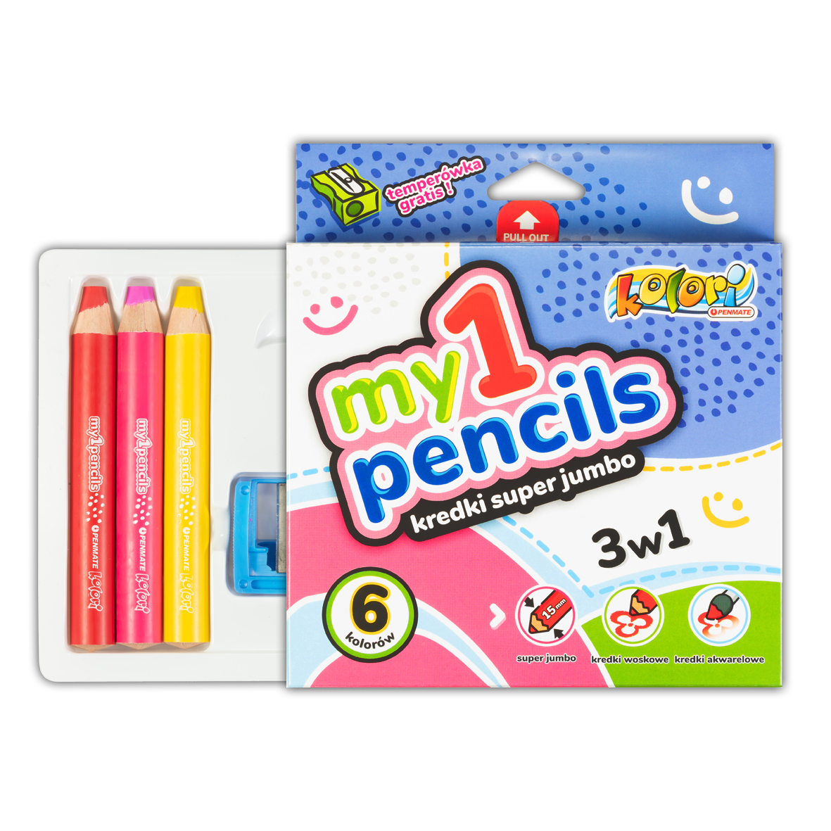 To idealne kredki dla malucha, grube (15mm) i wytrzymałe. W opakowaniu 6 żywych kolorów i gratisowa temperówka. Kredki łączą trzy funkcje: kredek tradycyjnych, woskowych i akwarelowych. Są mocno napigmentowane i nietoksyczne. To doskonała alternatywa dla klasycznych kredek, które małemu dziecku często ciężko uchwycić.
