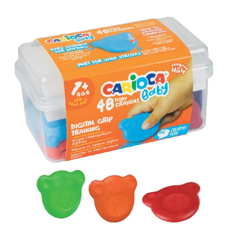 specjalny tył kredek zawiera wypustki, które są pomocne w nauce chwytania