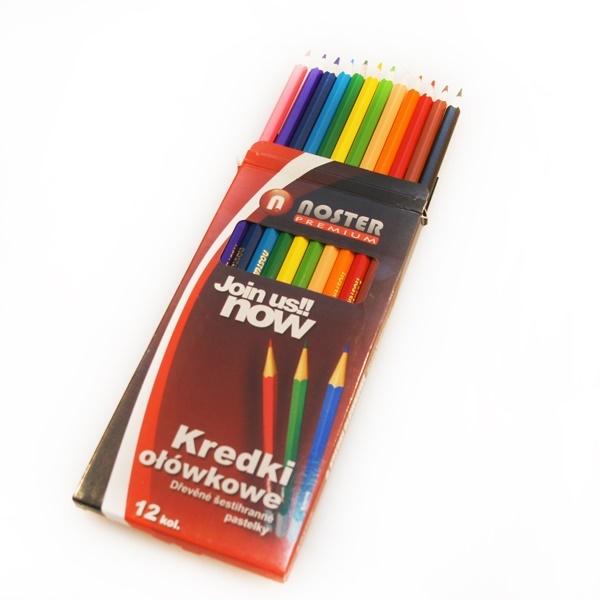 Kredki ołówkowe JOIN-US. Komplet 12 kolorów. Kredki wysokiej jakości. Hexagonalny kształt. Temperowane.