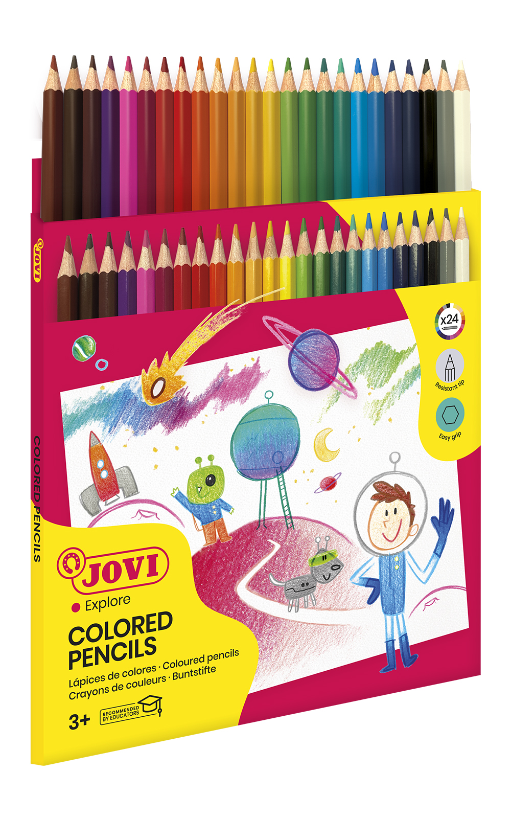 Kredki ołókowe, 24 kolory, długość 176 mm, średnica 7,6 mm.