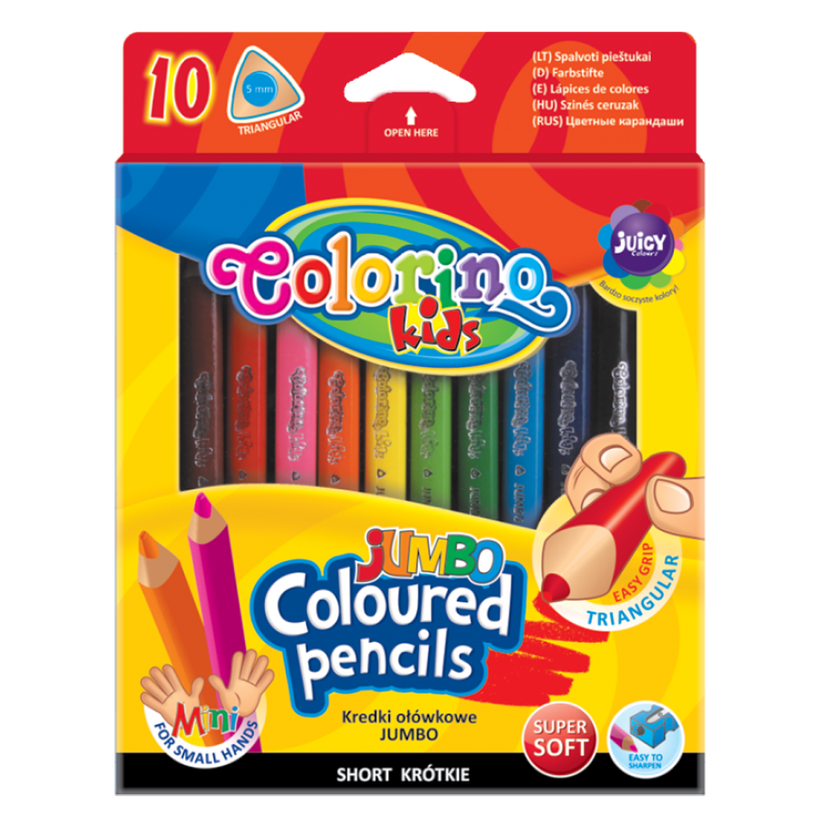 Kredki trójkątne Jumbo 10 kolorów. Bardzo soczyste kolory.