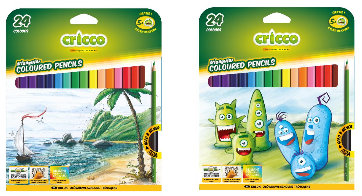 Kredki ołówkowe trójkątne 24 kolory Cricco