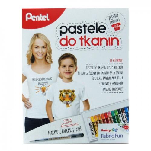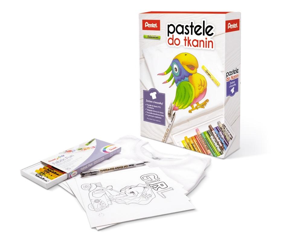 Pastele do tkanin PTS to fantastyczny produkt dla niespokojnych indywidualistów. Dzięki ich innowacyjnej formule można samemu wyczarować autorską koszulkę, bluzkę, torbę na zakupy czy spódniczkę. Wyraziste i nieblaknące kolory gwarantują mocną widoczność aplikacji, którą najpierw należy dokładnie sobie wyobrazić, by zaraz potem zmaterializować ją na wybranym materiale. Do tego typu kreatywnych działań najodpowiedniejsze będą tkaniny naturalne jak: bawełna, jedwab oraz len. Pastele nakłada się bezpośrednio na tekstylia za pomocą szablonów lub własnej wyobraźni i umiejętności. Gotowy wzór zakrywamy czystą kartką papieru, prasujemy żelazkiem w celu utrwalenia grafiki i już możemy cieszyć się niepowtarzalną garderobą. Pastele dzięki swej specyficznej konsystencji łatwo nakłada się na materiał, a kolory tryskają zdrową energią. Na ciemnym materiale świetnie zaprezentuje się biel i szarości, białe tkaniny można zmieniać zaś za pomocą ostrzejszych barw. Pastelowe szaleństwo może być świetną zabawą dla najmłodszych użytkowników i ich rodziców, stając się ciekawą alternatywą na stworzenie autorskiego prezentu, stroju karnawałowego, a także nietuzinkowej części codziennej garderoby. Dla wszystkich tych, którzy zmęczeni są sieciówkową uniformizacją, pastele staną się narzędziem do tworzenia unikatowych ubrań, które w wyjątkowy sposób będą wyrażać jedyny w swoim rodzaju styl. Operowanie tym produktem wpływa na kształtowanie manualnych umiejętności u dzieci i zapewnia pomysłowe spędzenie niejednego popołudnia. W skład zestawu wchodzą: pastele do tkanin 15 kolorów, czarny marker do tkanin NM10, koszulka w rozmiarze dziecięcym, 5 gotowych szablonów, katalog inspiracji.