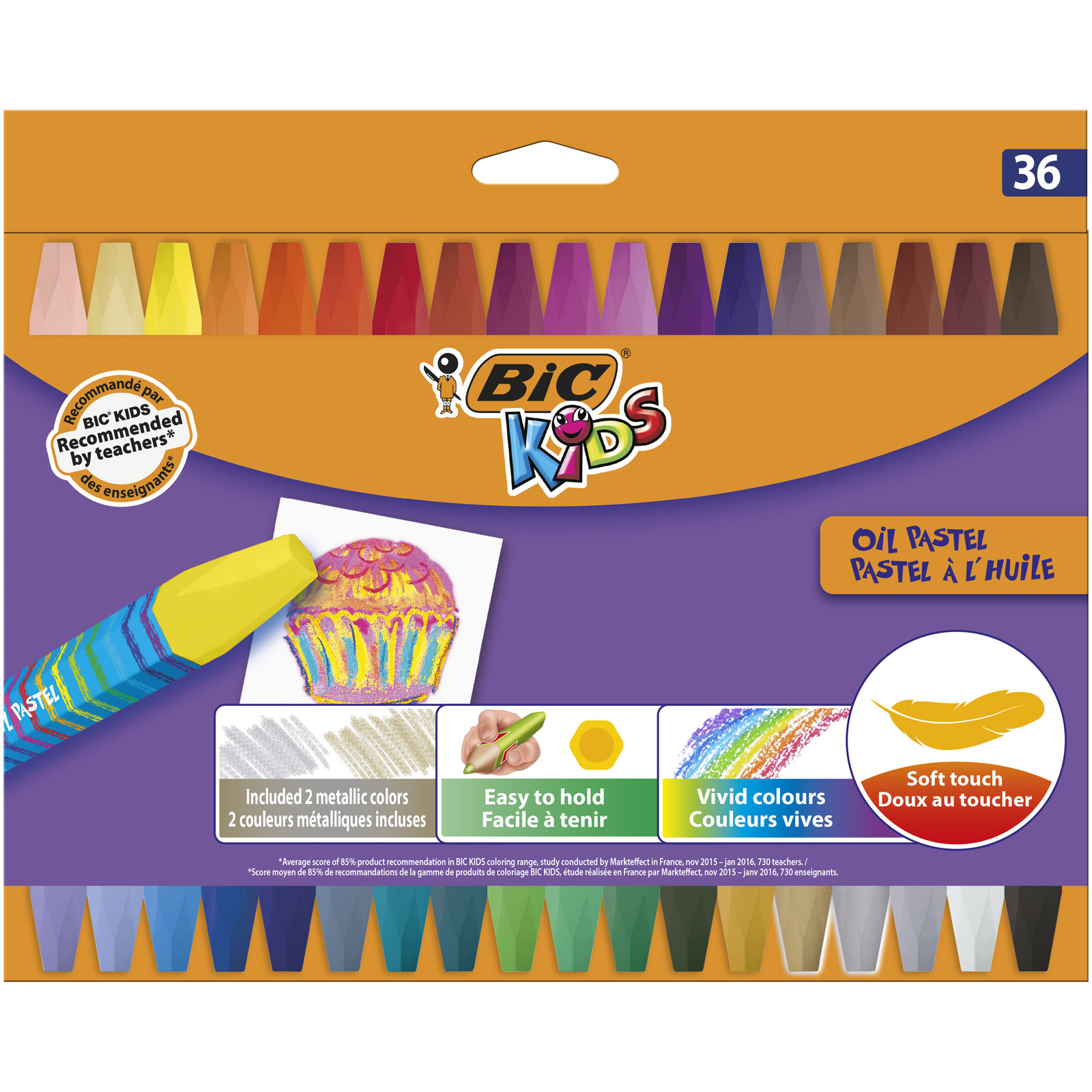 Sześciokątne pastele olejne do kolorowania. Miękkie w dotyku. Dobrze leżą w dłoni. Żywe kolory. 34 standardowych kolorów i 2 metaliczne.