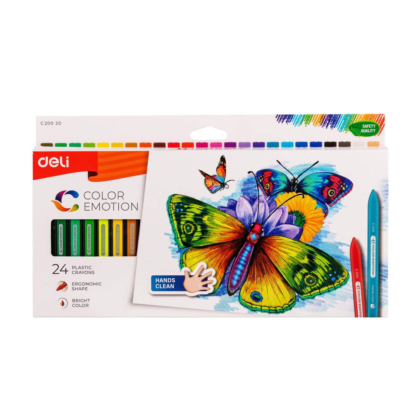 Kredki Deli C20020 to zestaw 24 jasnych kolorów, doskonałych do tworzenia kolorowych i żywych dzieł sztuki. Wykonane z wysokiej jakości plastiku, utrzymują czyste ręce w przeciwieństwie do kredki woskowej. Wygodne i gotowe do użycia od razu, przedwstępnie naostrzone opakowanie. Gładkie malowanie, trójkątny kształt dla wygodnego chwytu i bezpieczność dla dzieci to dodatkowe cechy tego produktu.