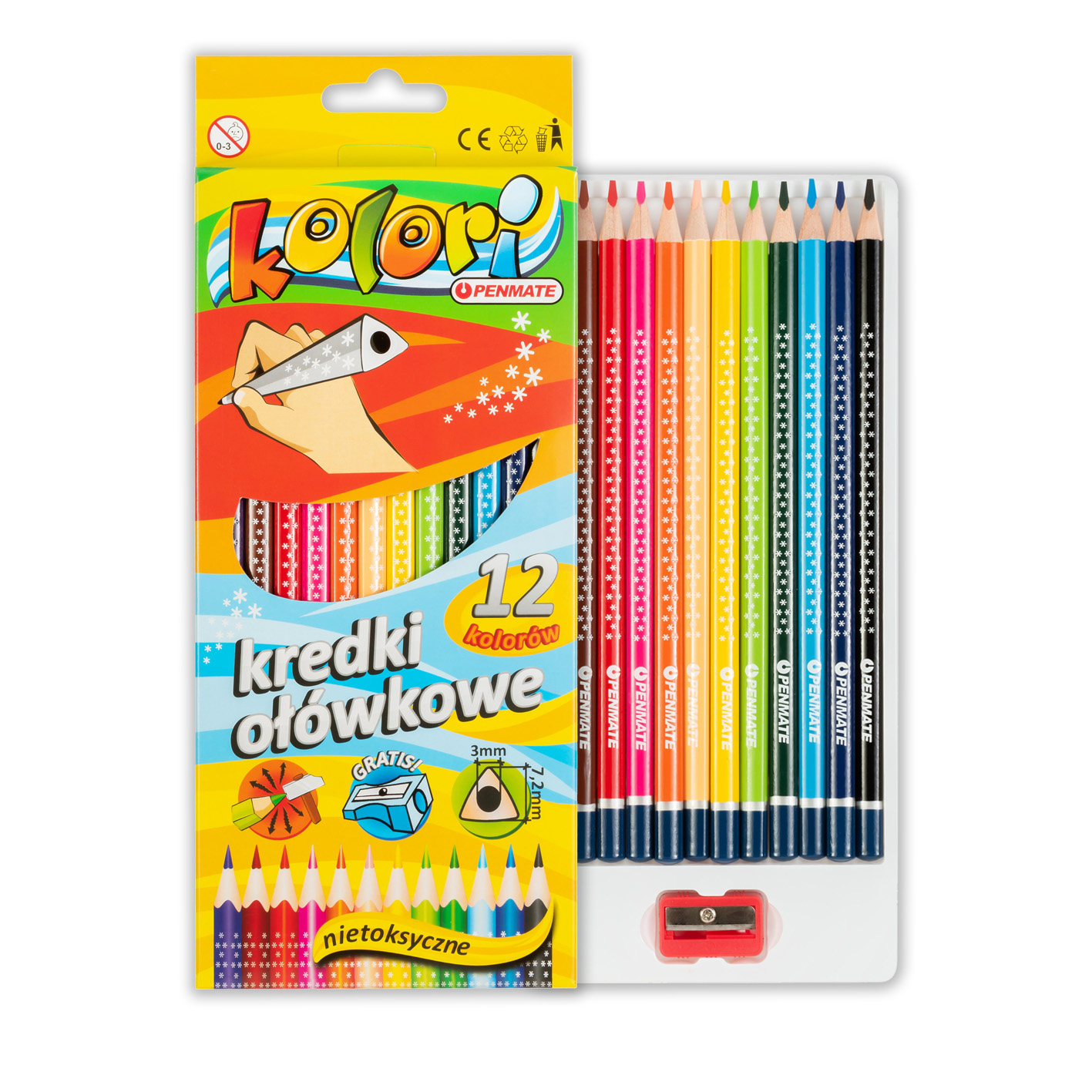 Komplet 24 sztuk kredek ołówkowych w trójkątnej obudowie, kolor złoty i srebrny w zestawie. Grafit o średnicy 3 mm i zwiększonej odporności na złamanie. Nowoczesna formuła pigmentów dająca żywe, niegasnące kolory. Obudowa wykonana z najwyższej jakości jasnego drewna lipowego, łatwego w temperowaniu. Nadruk na trzech płaszczyznach, końcówki kredek lakierowane metodą zanurzania. Foliowane, trwałe pudełko z tacką na kredki w środku. Temperówka w zestawie gratis. Nietoksyczne, zgodne z normą EN71.