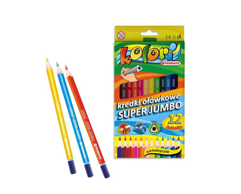 Komplet 12 sztuk grubych kredek ołówkowych w trójkątnej obudowie. Grafit o średnicy 5 mm i zwiększonej odporności na złamanie. Nowoczesna formuła pigmentów dająca żywe, niegasnące kolory. Obudowa wykonana z najwyższej jakości jasnego drewna lipowego, łatwego w temperowaniu. Nadruk na trzech płaszczyznach, końcówki kredek lakierowane metodą zanurzania. Foliowane, trwałe pudełko z tacką na kredki w środku. Temperówka w zestawie gratis. Nietoksyczne, zgodne z normą EN71.