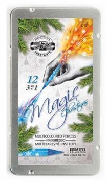 Kredki z efektownym wielokolorowym wkładem. Umożliwiają tworzenie efektownych i niepowtarzalnych prac. Kolor kreski zmienia się w zależności od obrotu, nachylenia i zużycia kredki.