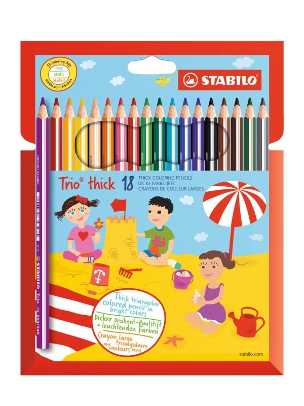 STABILO color - klasyczne kredki bardzo dobrej jakości. Intensywne kolory i miękki rdzeń sprawiają, że kolorowanie jest prawdziwą przyjemnością. Średnica wkładu 2,5 mm. Dostępne w zestawach od 12 do 30 kolorów. Świetny dodatek do szkolnego piórnika. Kartonowe etui zawierające 18 szt. kredek.