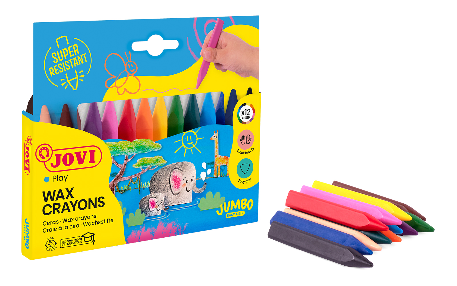 Wysokiej jakości kredki świecowe trójkątne nie brudzące, o 12 intensykwnych kolorach. Miękko rysują, odporne na złamania.