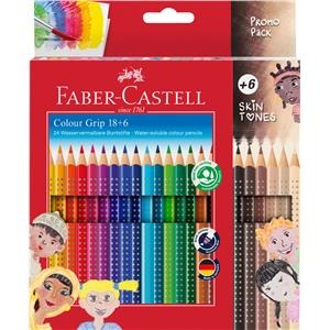 Kredki Colour Grip 18 + 6 kredek w odcieniach skóry od Faber Castell. Kredki Colour Grip zostały zaprojektowane z myślą o wygodzie użytkownika. Ich ergonomiczny trójkątny kształt sprawia, że są one łatwe do trzymania i pozwalają na długotrwałe malowanie bez zmęczenia dłoni. Kredki te są podatne na wodę co pozala na tworzenie efektów rozmywania. Ciesz się tworzeniem sztuki bez obaw o plamy na ubraniach. Kredki Colour Grip są łatwo zmywalne z większości tkanin, dzięki czemu możesz malować swobodnie i bez stresu. Kredki posiadają wydzielone miejsce na imię, co ułatwia ich identyfikację i organizację. Kredki charakteryzują się niezwykle wysoką odpornością na złamanie, dzięki zastosowaniu zaawansowanego procesu wiązania Secural (SV).