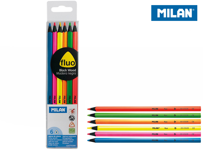 Fluorescencyjne kredki, Trójkątne i z czarnym drewnie lipowym. Kredki MILAN zawierają wysokiej jakości pigmenty i system. ochrony rysika LPS, który zwiększaich odporność na złamanie. Wewnątrz złamać. kredki, rysik i drewno sklejone są zesobą na całej długości, w taki sposób, że nie można ich rozdzielić ani złamać.