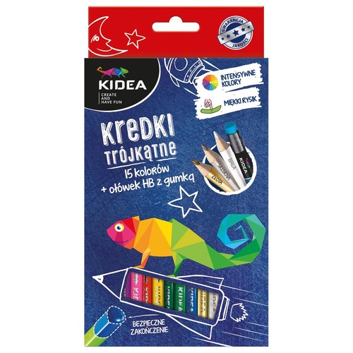Kredki Kidea trójkątne 15 kolorów z ołówkiem