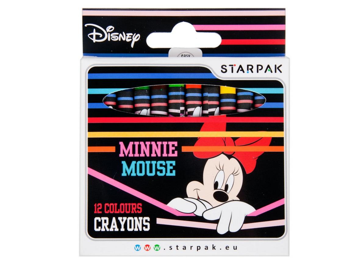 Zestaw 12 kredek woskowych z kolekcji Starpak z licencją Minnie. Kredki w żywych barwach idealnych dla najmłodszych artystów, którzy dopiero zaczynają malować. Nie łamią się podczas rysowania ani strugania. Dobrze kryją malowaną powierzchnię. Zapakowane w kartonowe pudełko, które ułatwia przechowywanie.
