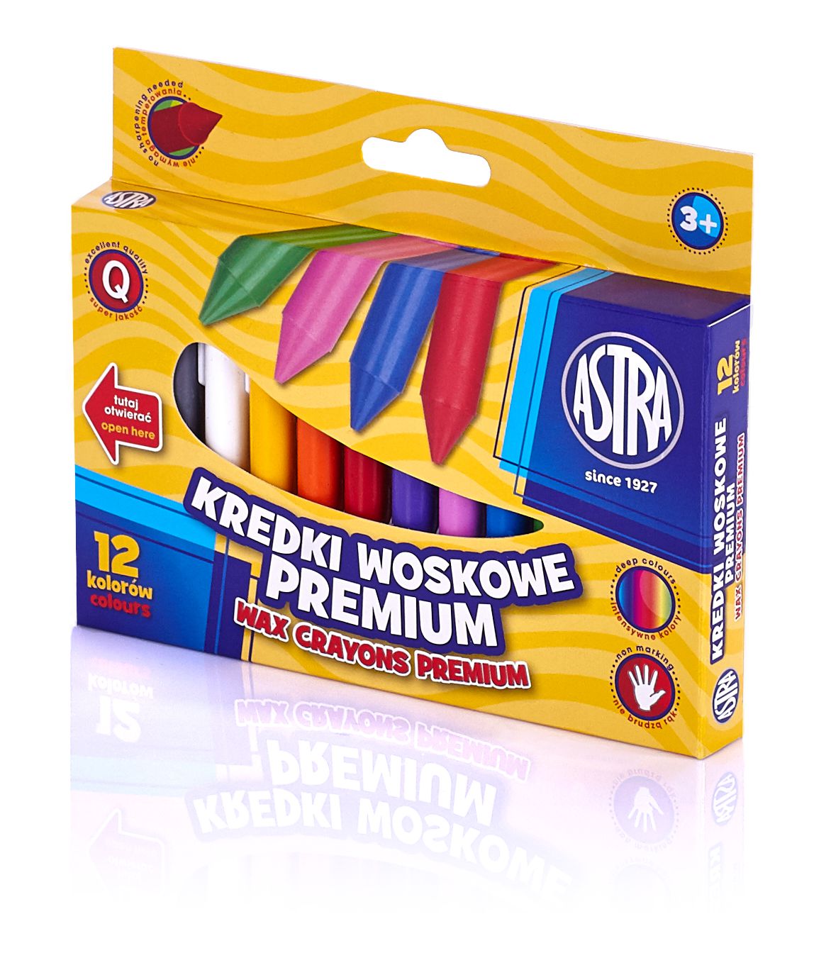 Kredki woskowe ASTRA VISION są wytwarzane na bazie wysokiej jakości surowców. Mają żywe, intensywne kolory oraz doskonałe właściwości kryjące. Są odporne na złamania, nie kruszą się, nie pylą i nie brudzą rąk. Nie wymagają temperowania. Kredki pozwalają kreślić łagodne, jednolite linie na wszystkich rodzajach papieru oraz na powierzchniach drewnianych i porowatych np. asfalt lub papier ścierny. Używane są w technice batikowej.