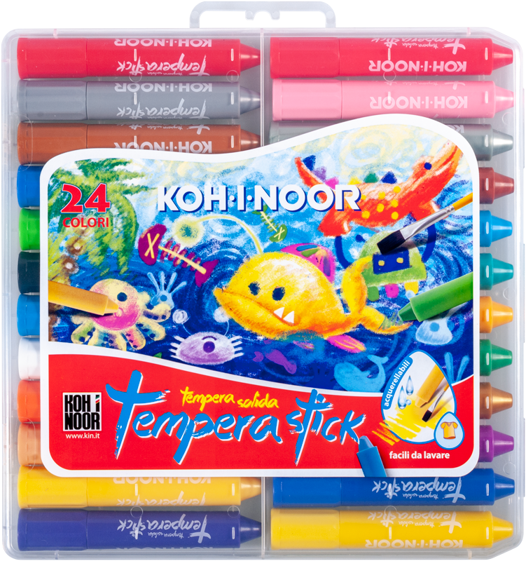 Kredki woskowe wykręcane Tempera Stick w 24 kolorach w plastikowym pudełku. Idealne do malowania na papierze. Kolory mozna ze sobą mieszać. Zmywalne.